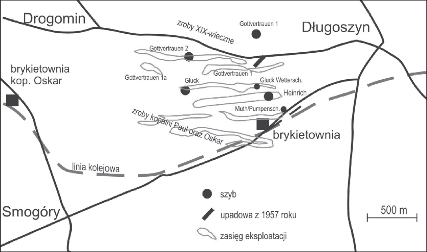 Źródło: A. Gontaszewska-Piekarz, Kopalnia węgla brunatnego „Eduard” w Długoszynie koło Sulęcina, „Nadwarciański Rocznik Historyczno-Archiwalny”, nr 24/2017.