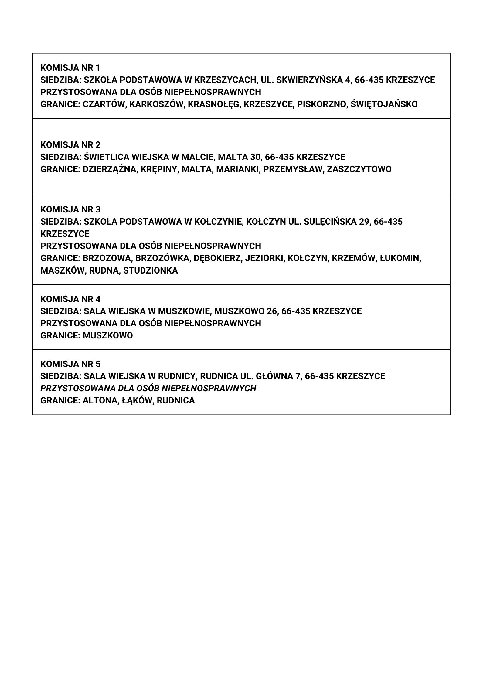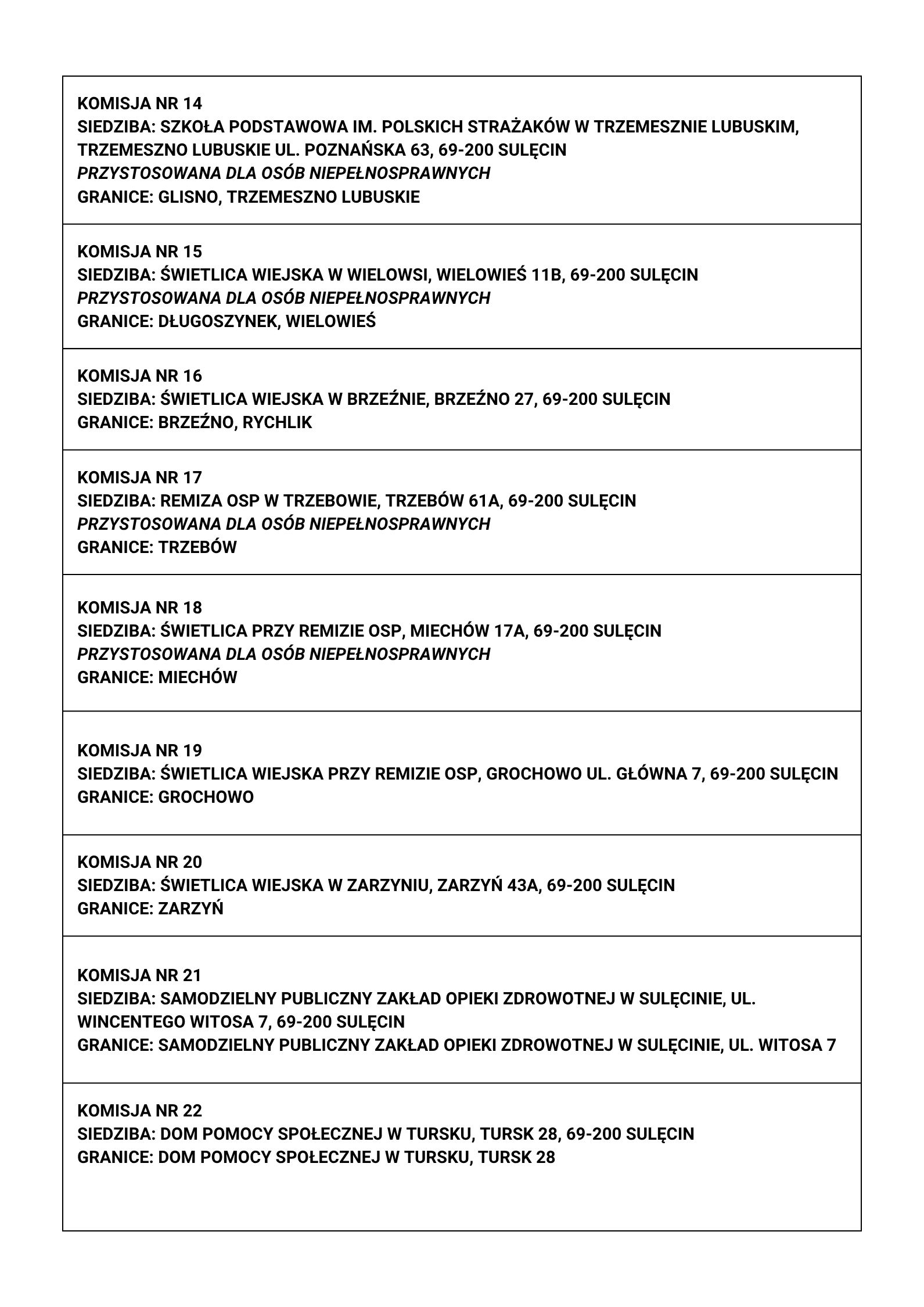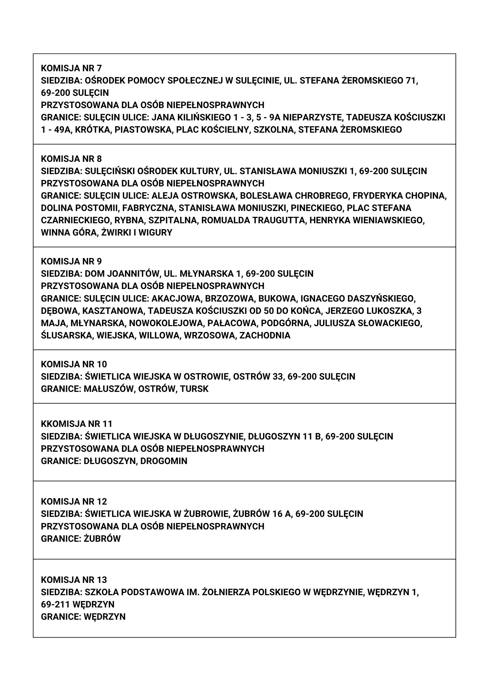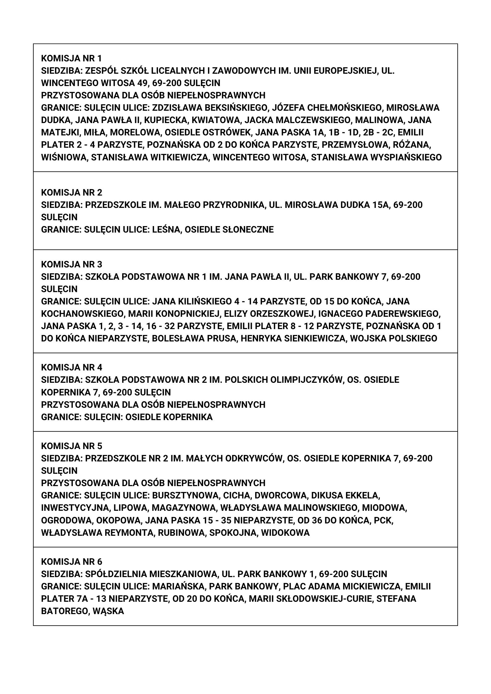 Dla ułatwienia przygotowaliśmy przejrzyste zestawienie Obwodowych Komisji Wyborczych dla wszystkich gmin powiatu sulęcińskiego: Sulęcin, Torzym, Lubniewice, Słońsk i Krzeszyce.