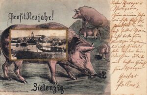8. Kartka pocztowa z życzeniami szczęśliwego Nowego Roku, Sulęcin, ok. 1900-1905