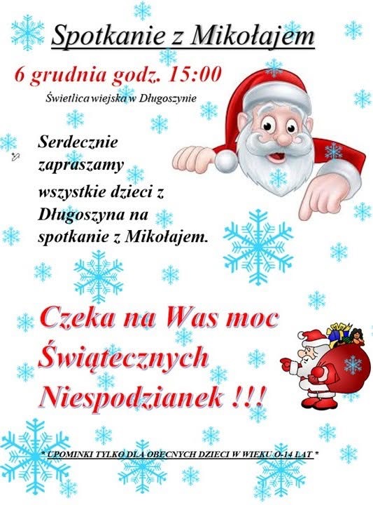 Świetlica w Długoszynie, godz. 15:00 - 06.12 – Spotkanie Mikołajkowe
