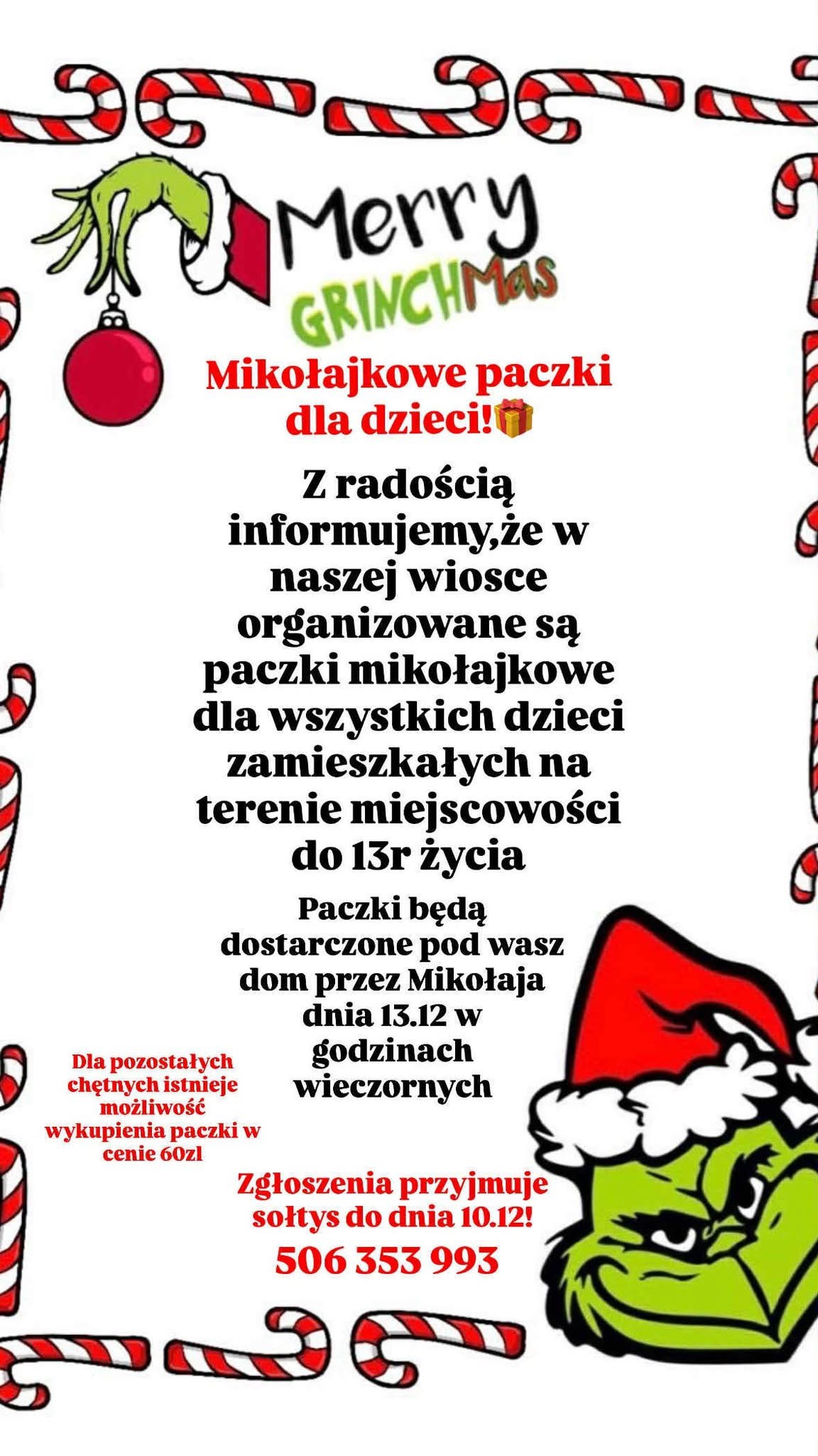 Sołectwo Lubin – paczki robione są dla wszystkich dzieci do 13 roku życia, zgłoszenia – do 10 grudnia – przyjmuje sołtys Kamil Marcilonisz