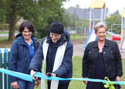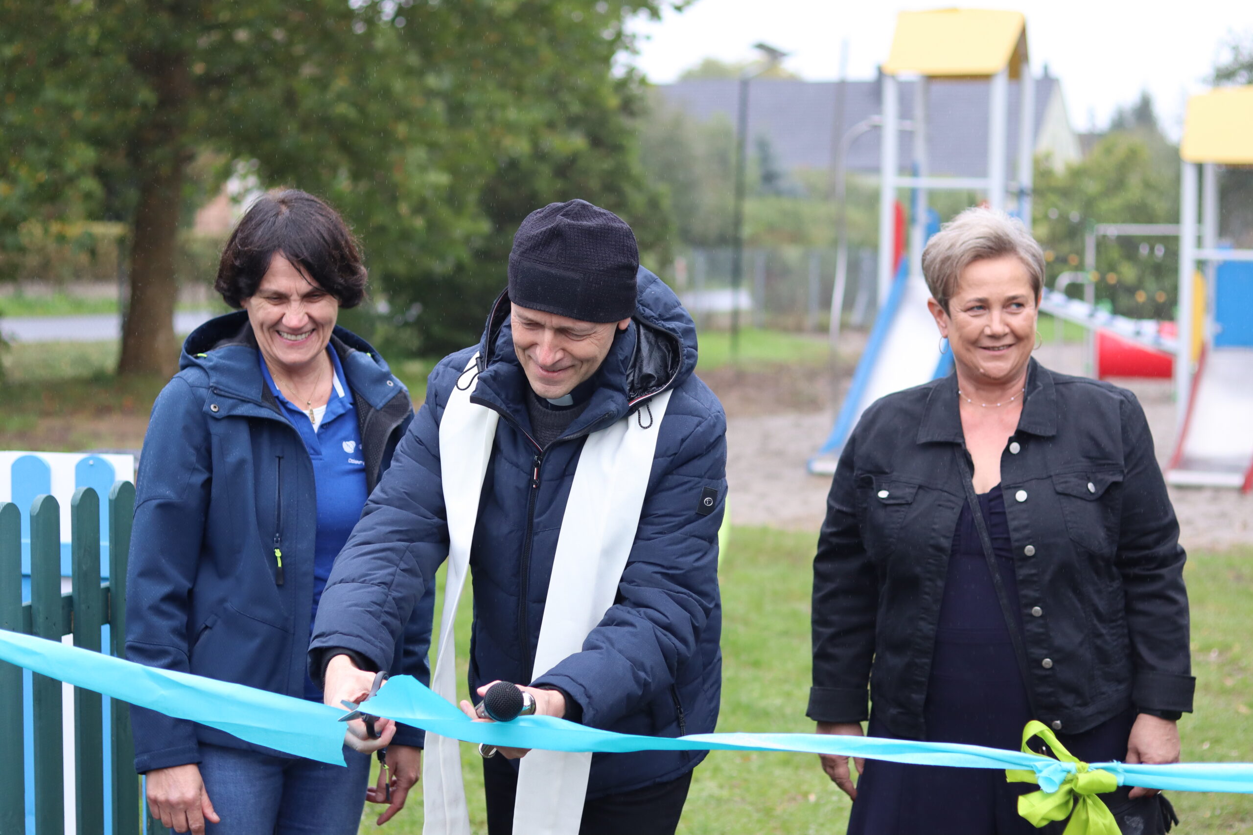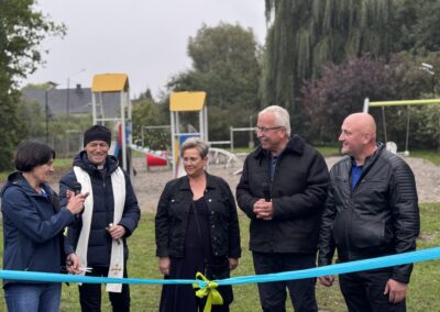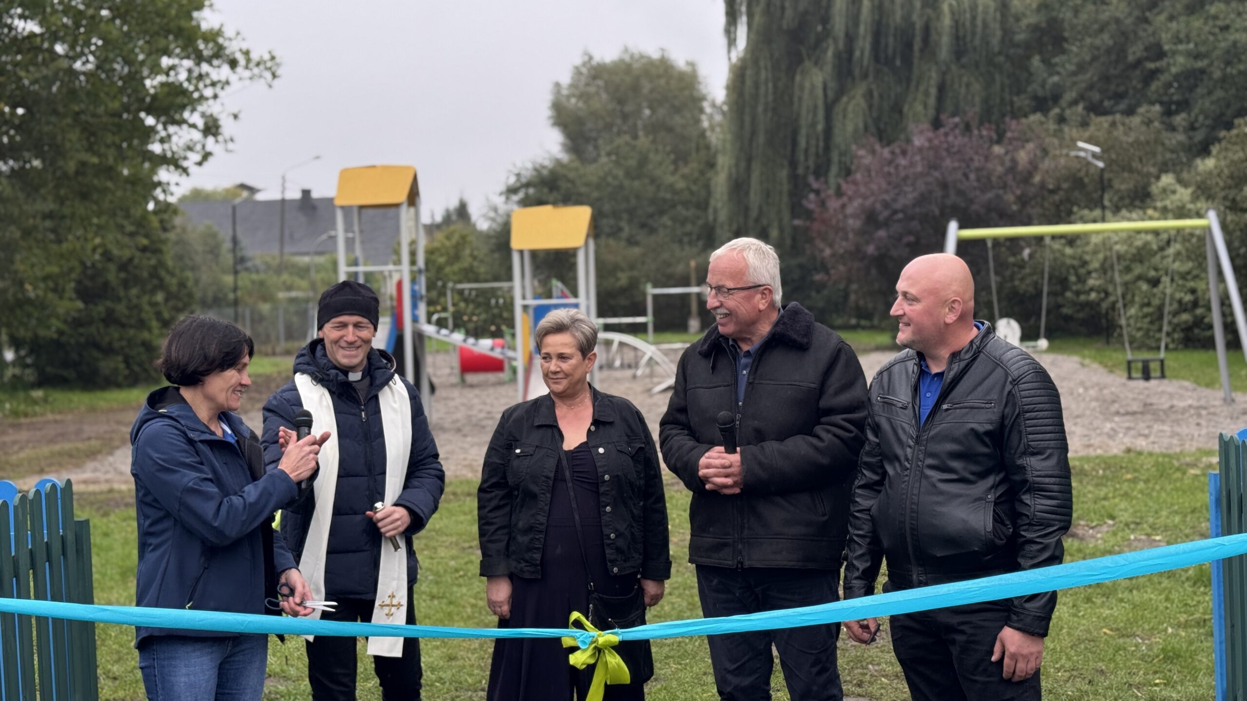 Choć pogoda nie dopisała, otwarcie nowego placu zabaw w Muszkowie przyciągnęło wielu mieszkańców. W wydarzeniu uczestniczyli przedstawiciele władz powiatu i gminy, radni Rady Gminy Krzeszyce, sołtysi, Koła Gospodyń Wiejskich oraz reprezentanci firmy De Heus.