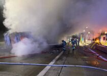 Jednostki z naszego powiatu – JRG Sulęcin, OSP Torzym, OSP Gądków Wielki i OSP Boczów – w sobotnią noc interweniowały przy tragicznym wypadku na A2 w Punkcie Poboru Opłat Tarnawa. Samochód ciężarowy uderzył w biletomat, przewrócił się i stanął w płomieniach.