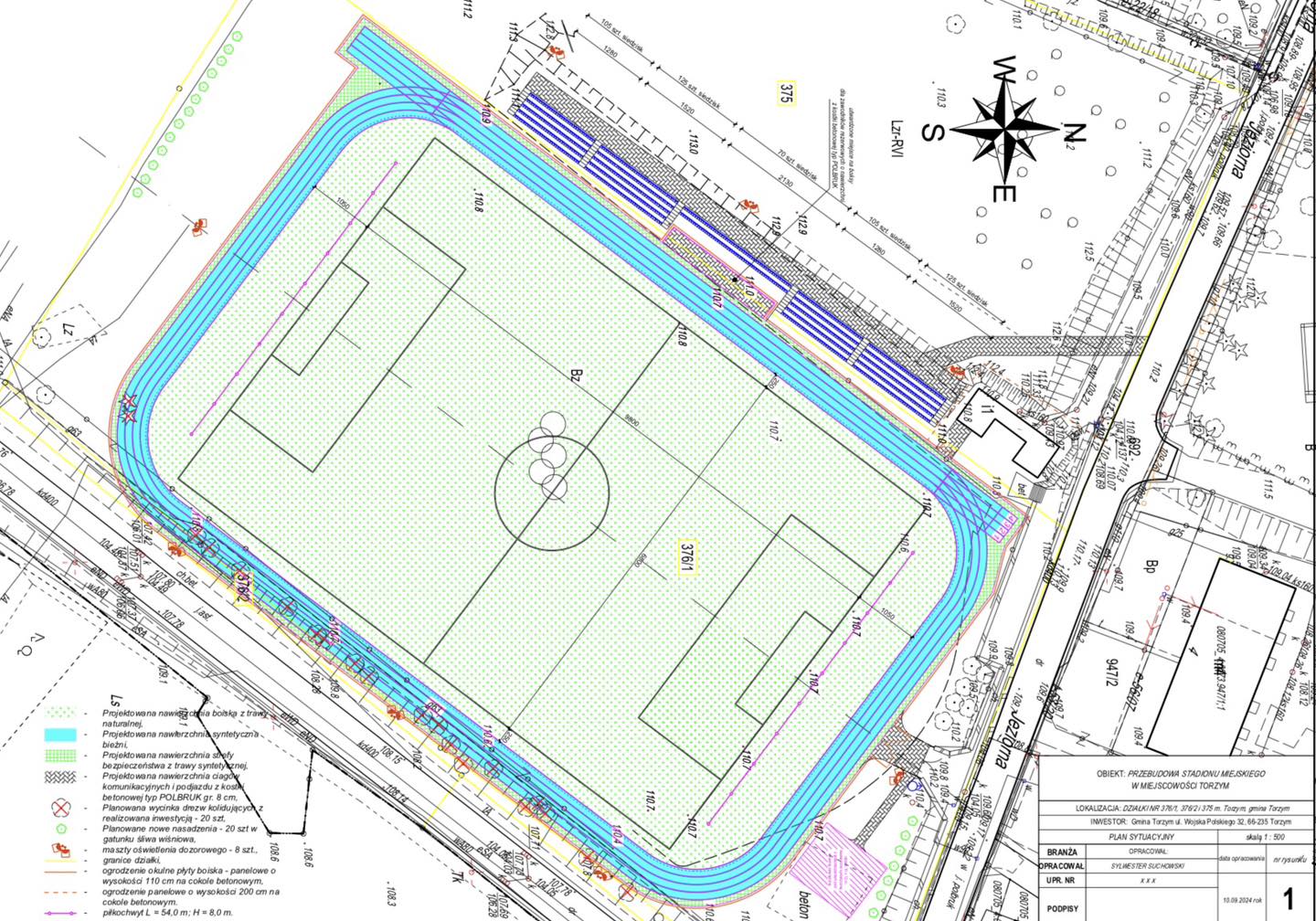 W ramach przygotowań zaplanowano wycinkę 20 drzew kolidujących z budową. Zastąpią je nasadzenia śliwy wiśniowej, które odmienią otoczenie stadionu i wprowadzą świeżą zieleń.
