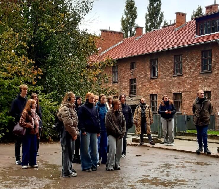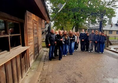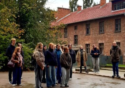 Młodzież odwiedziła Oświęcim oraz były obóz koncentracyjny Auschwitz-Birkenau. Wzięła udział w zajęciach o losach ofiar Holokaustu. W Centrum Edukacji Muzeum Auschwitz-Birkenau uczniowie pracowali w grupach nad tematami Dzieci w KL Auschwitz i Kobiety w KL Auschwitz. Uczyli się historii poprzez źródła, filmy i świadectwa.